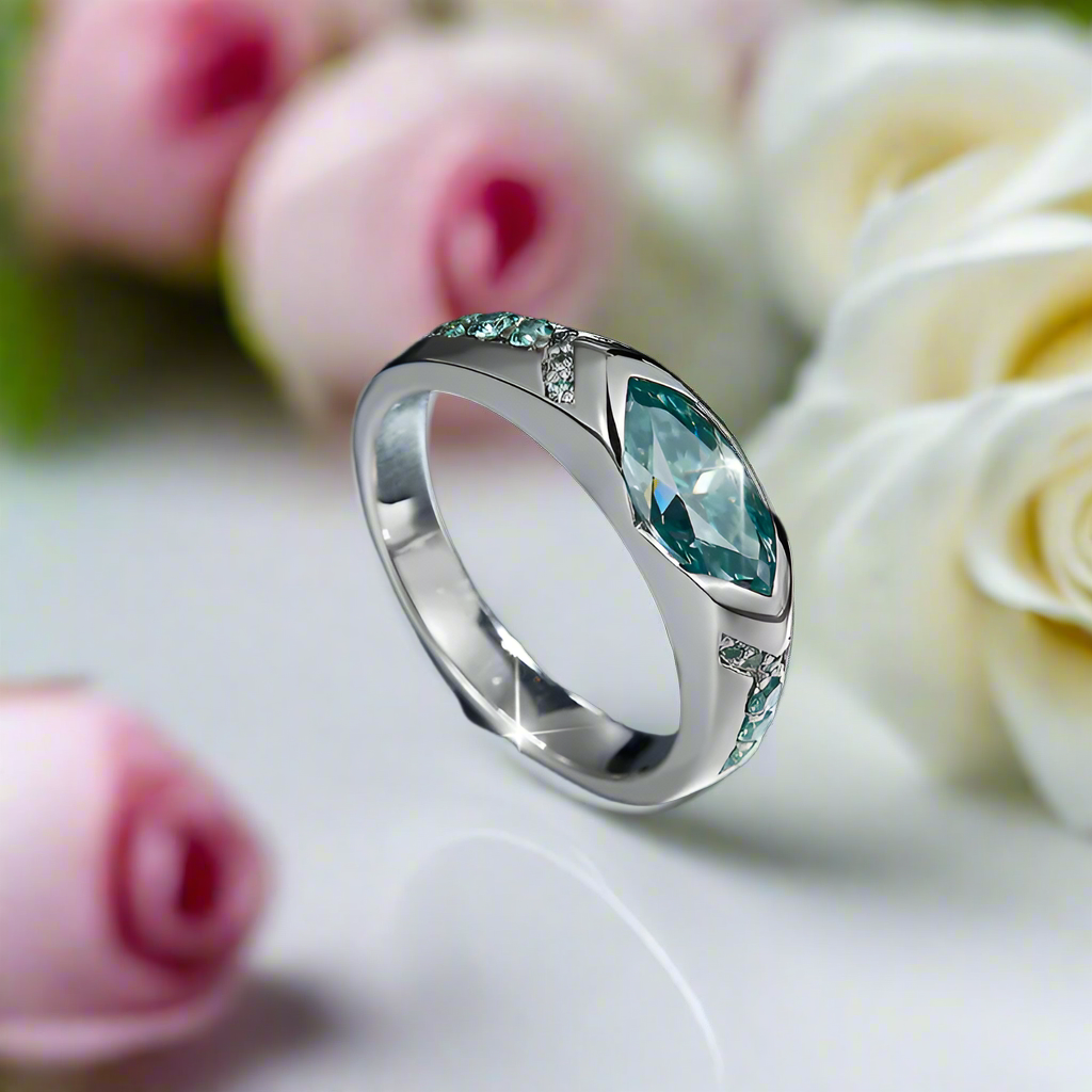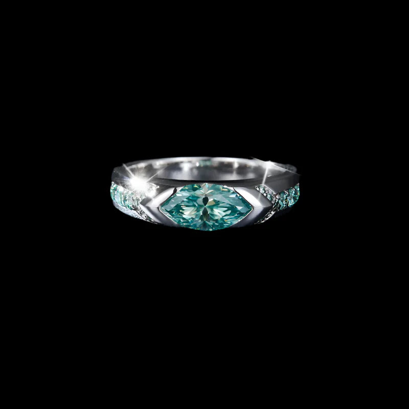 Discover the splendor of our exquisite 1.0 Ct Marquise Cut Diamond Wedding Band. Expertly crafted with 925 Sterling Silver and featuring a dazzling marquise cut Moissanite center stone, this ring exudes elegance and sophistication. The main stone boasts 1.0 Ct and measures 5*10mm, with a captivating D color and VVS1 clarity. Adorned with 0.26 Ct of side stones, this band is finished with a lustrous White Gold plating and a secure bezel setting. Elevate your special day with this luxurious wedding band.