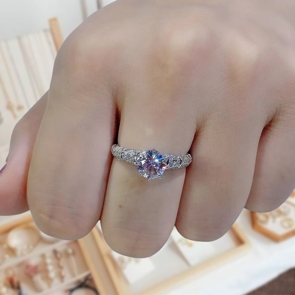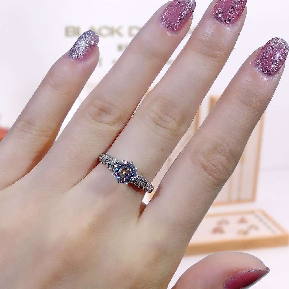 This 6.5mm 1.0ct Round Certified Moissanite Retro Engagement Ring from Black Diamonds New York will capture your heart at first glance. Crafted from a luxurious and high-quality 14k white gold, this ring boasts a stunning round-cut diamond with gorgeous round side stones to add extra sparkle. Elegant and understated, this piece is an affordable and timeless investment that will become a treasured symbol of your love.