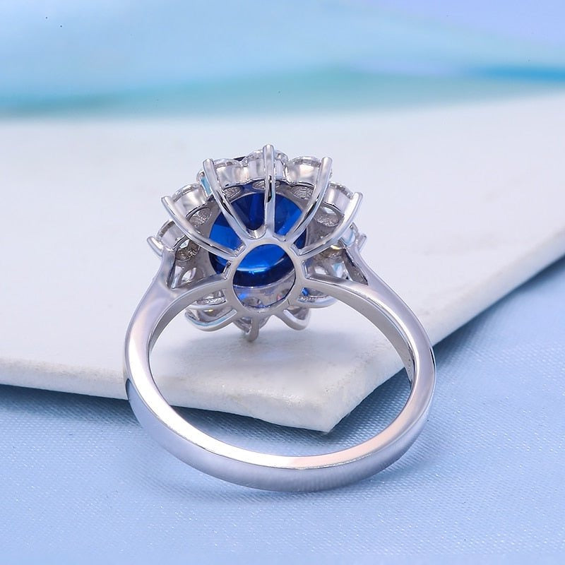 14k White Gold Oval Cut Sapphire with Diamond Engagement Ring