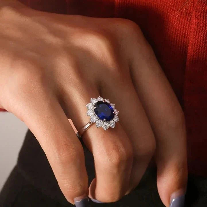 Indulge in pure luxury with our 14k White Gold Oval Cut Sapphire with Certified Moissanite Engagement Ring by Black Diamonds New York. This exquisite ring features a captivating oval cut sapphire complemented by twelve round moissanite stones, creating a truly mesmerizing design. The high-quality craftsmanship and stunning details make this piece a gorgeous choice for your engagement. Make a statement of love with this affordable yet opulent ring.