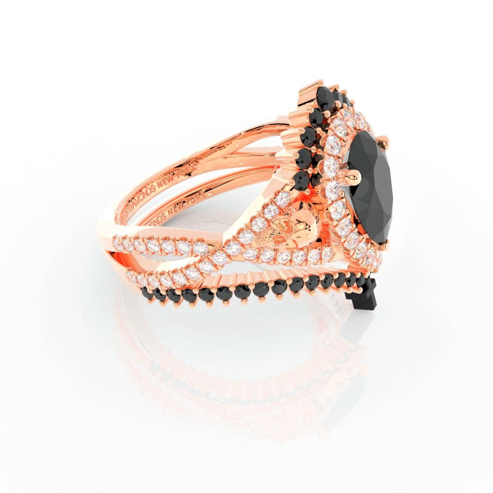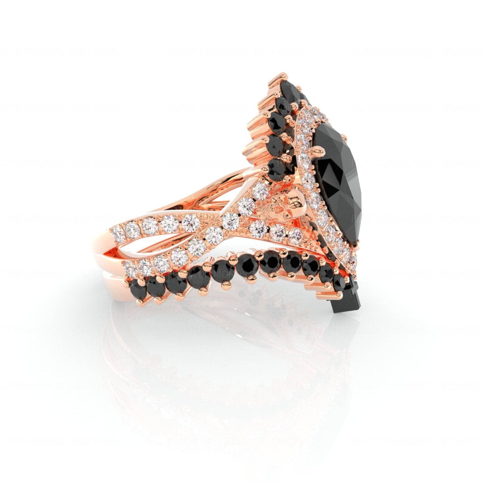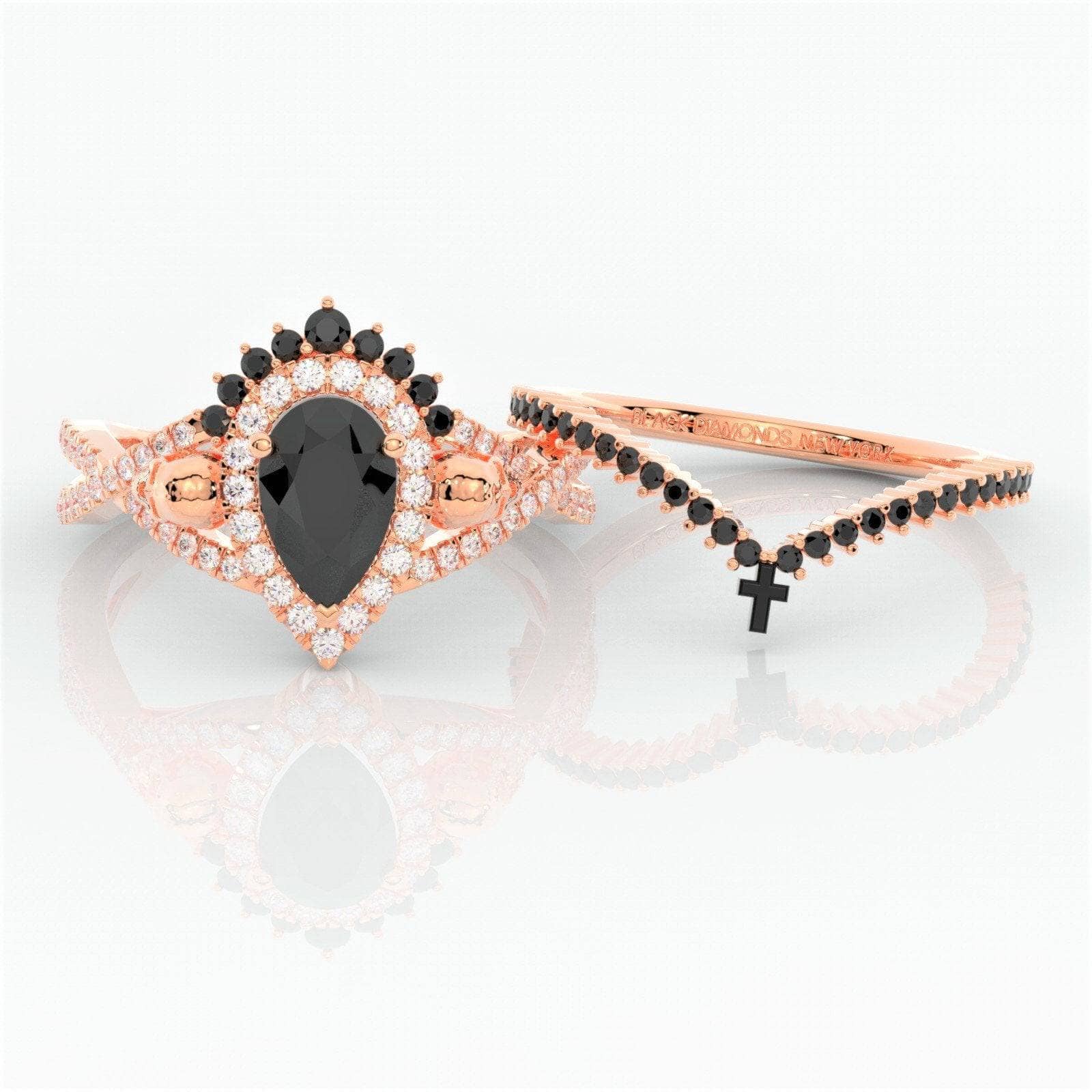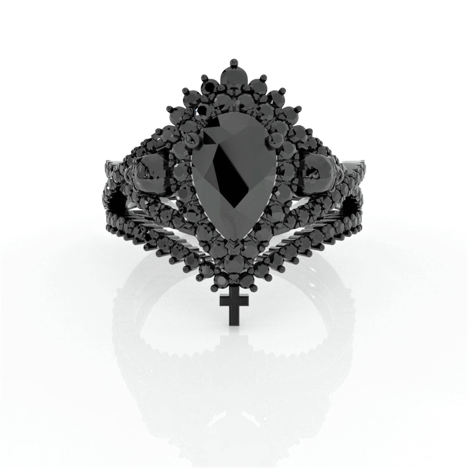 Loyalty Ring- 1ct Pear Cut Black Diamond Skull Ring Set
