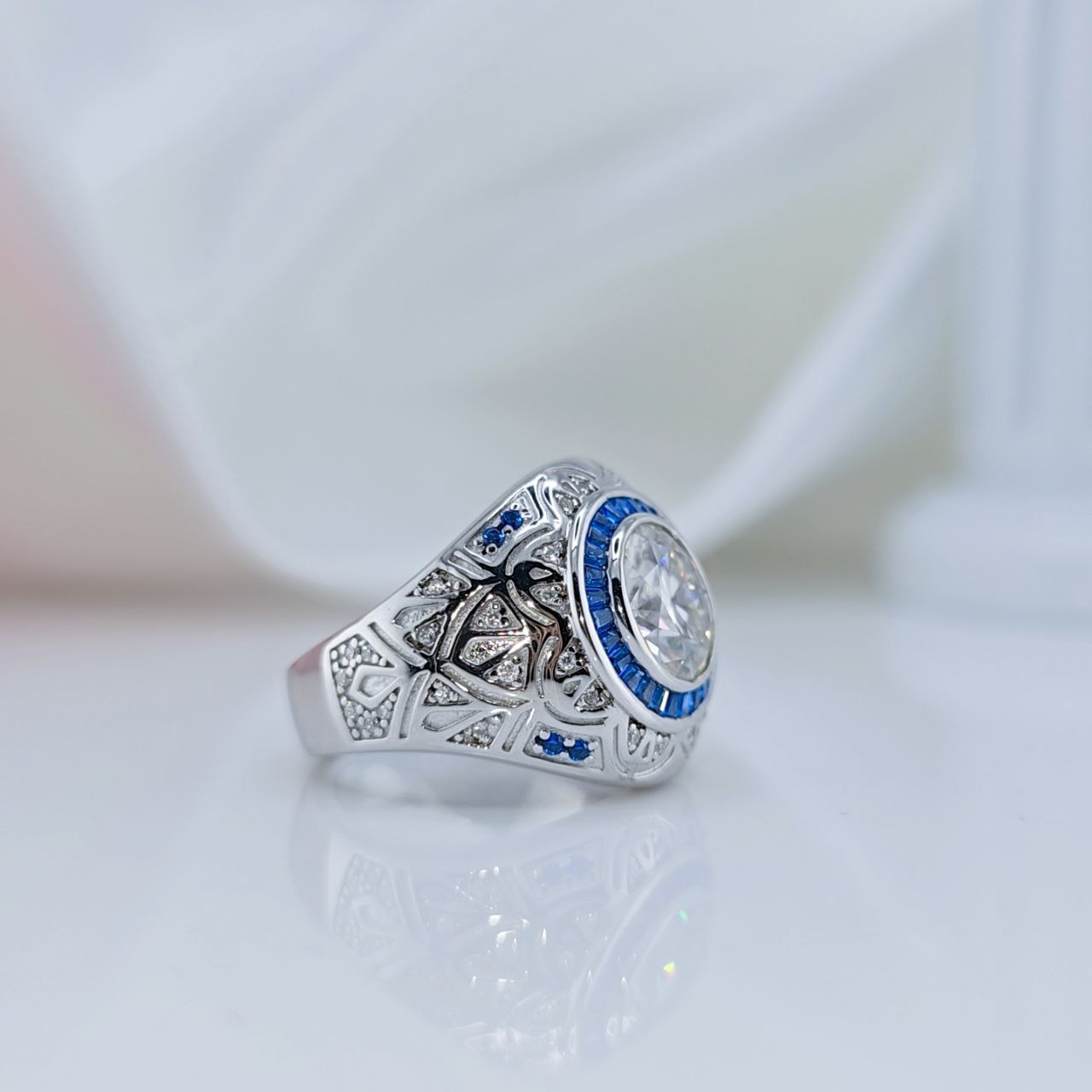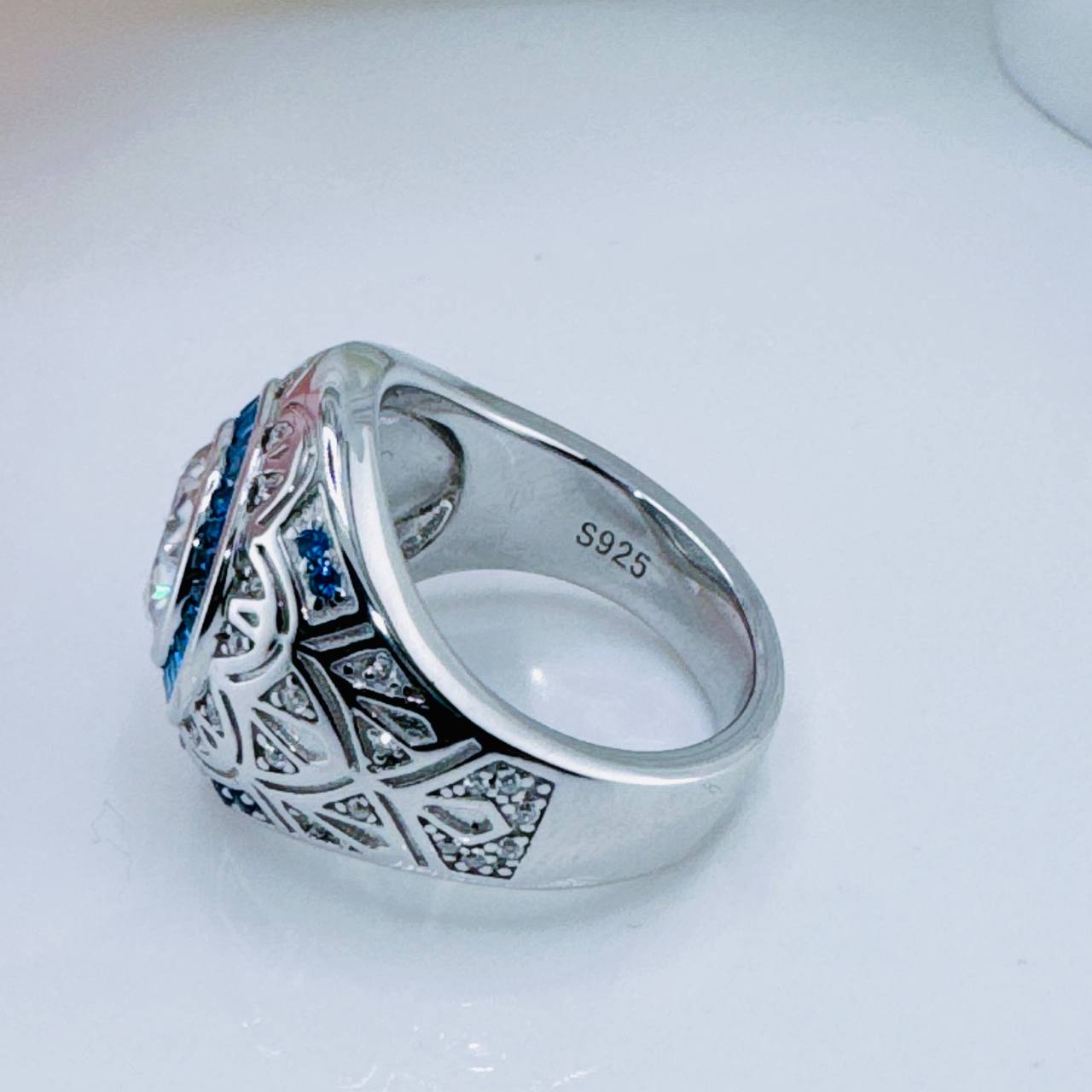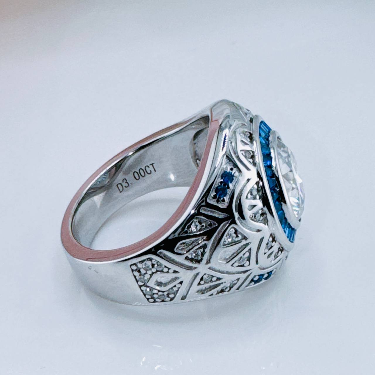 Side Stones: Certified Moissanite /Blue Diamond Alternative