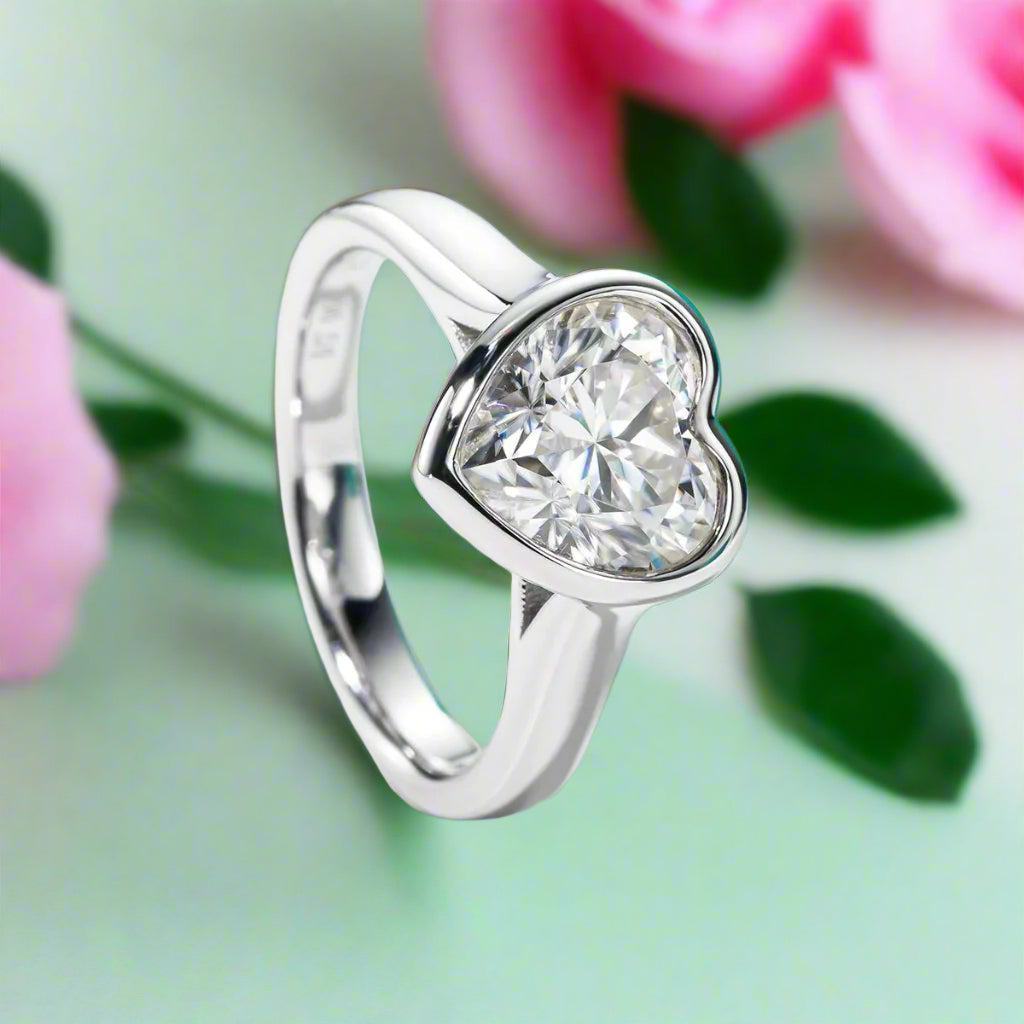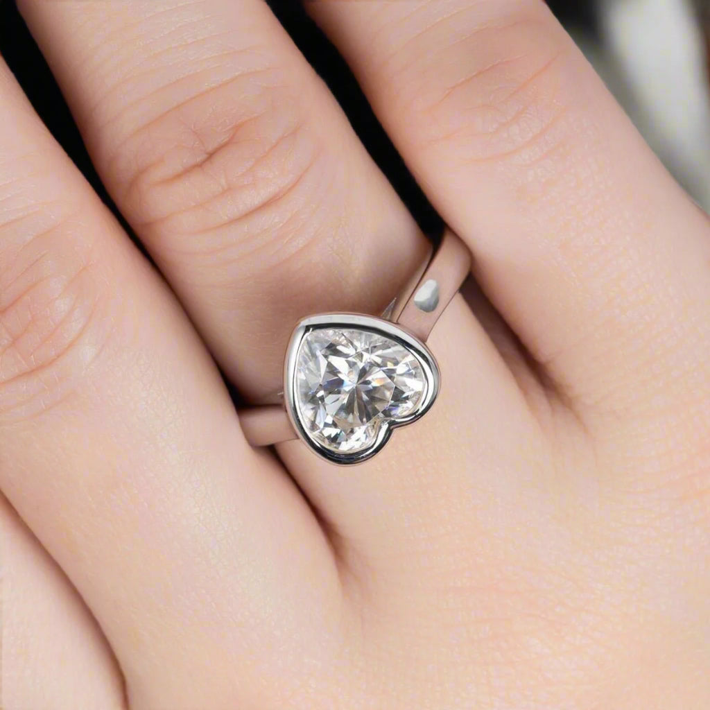 Elevate your love story with our Heart Cut Certified Moissanite Engagement Ring. Crafted with the finest moissanite, this elegant piece features a captivating bezel setting that beautifully complements the heart-shaped stone. Made with undeniable class and sophistication, this ring is sure to make your loved one feel special and cherished.