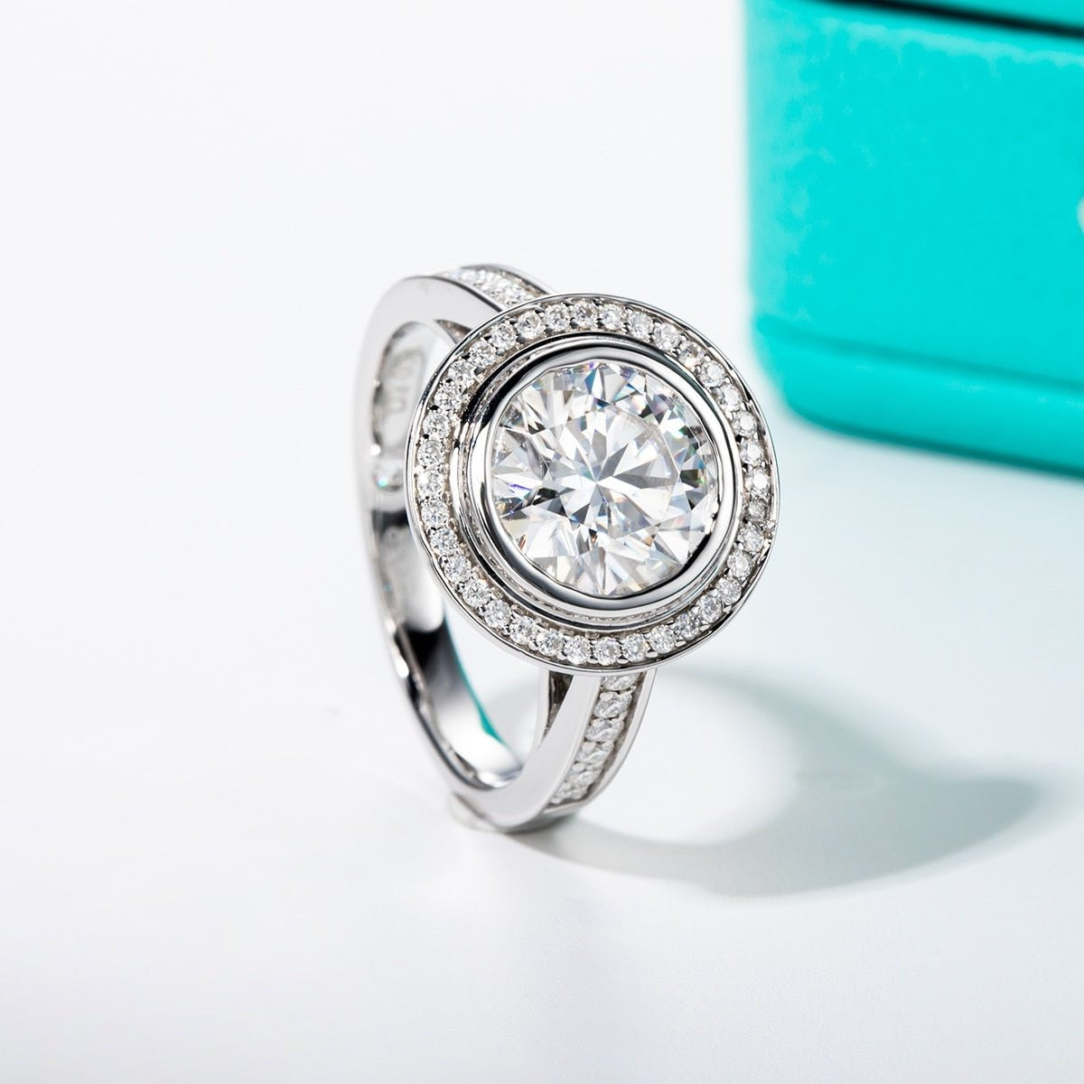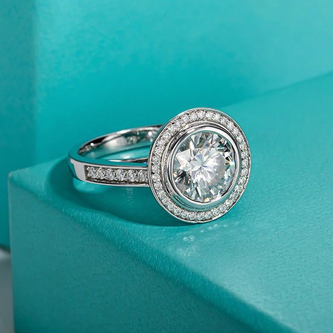 Step into the limelight with our exquisite 3.0 Ct Round Cut Certified Moissanite Halo White Gold Engagement Ring. This celebrity-inspired sparkler features a stunning round cut moissanite gemstone surrounded by an elegant halo of dazzling diamonds. Radiating with class and sophistication, this ring has a beautifully crafted design and timeless appeal. A perfect symbol of your love, this ring is sure to make your beloved's heart skip a beat.