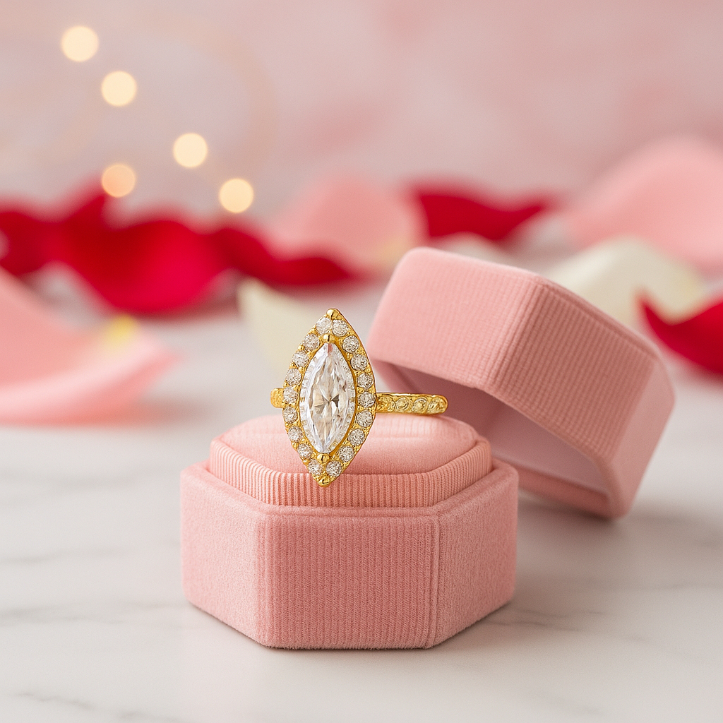 Designed to captivate with its elegant silhouette and brilliant sparkle. The distinctive marquise cut enhances the diamond’s natural brilliance, elongating the finger and offering a timeless, sophisticated appeal. Expertly set to maximize light reflection, this ring seamlessly blends classic artistry with modern elegance, making it a stunning symbol of enduring love and refined taste. Perfect for the discerning wearer who appreciates both exceptional craftsmanship and an unforgettable statement piece.