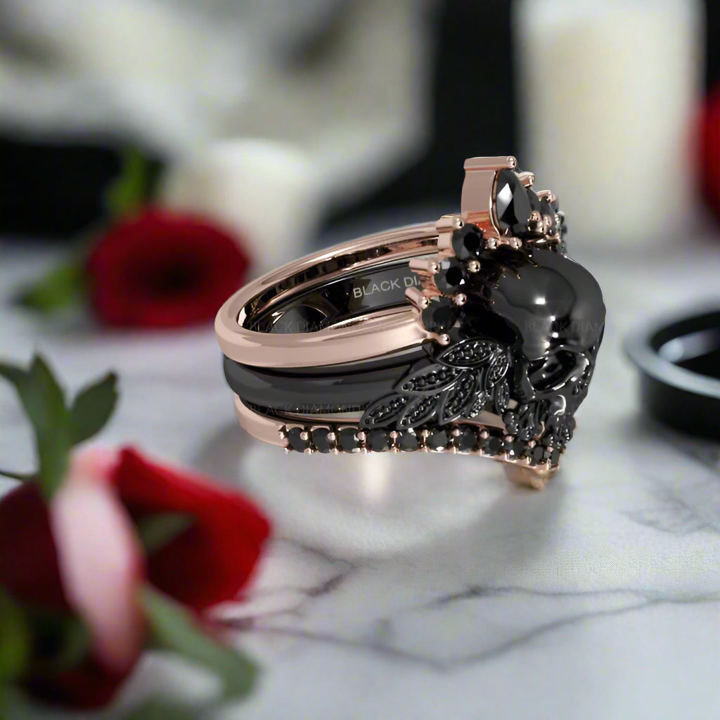 3pc Rose Gold Black Diamond Gothic Ring - My Queen