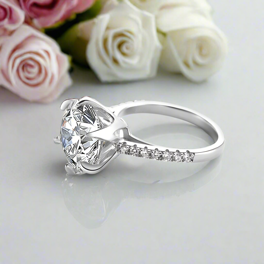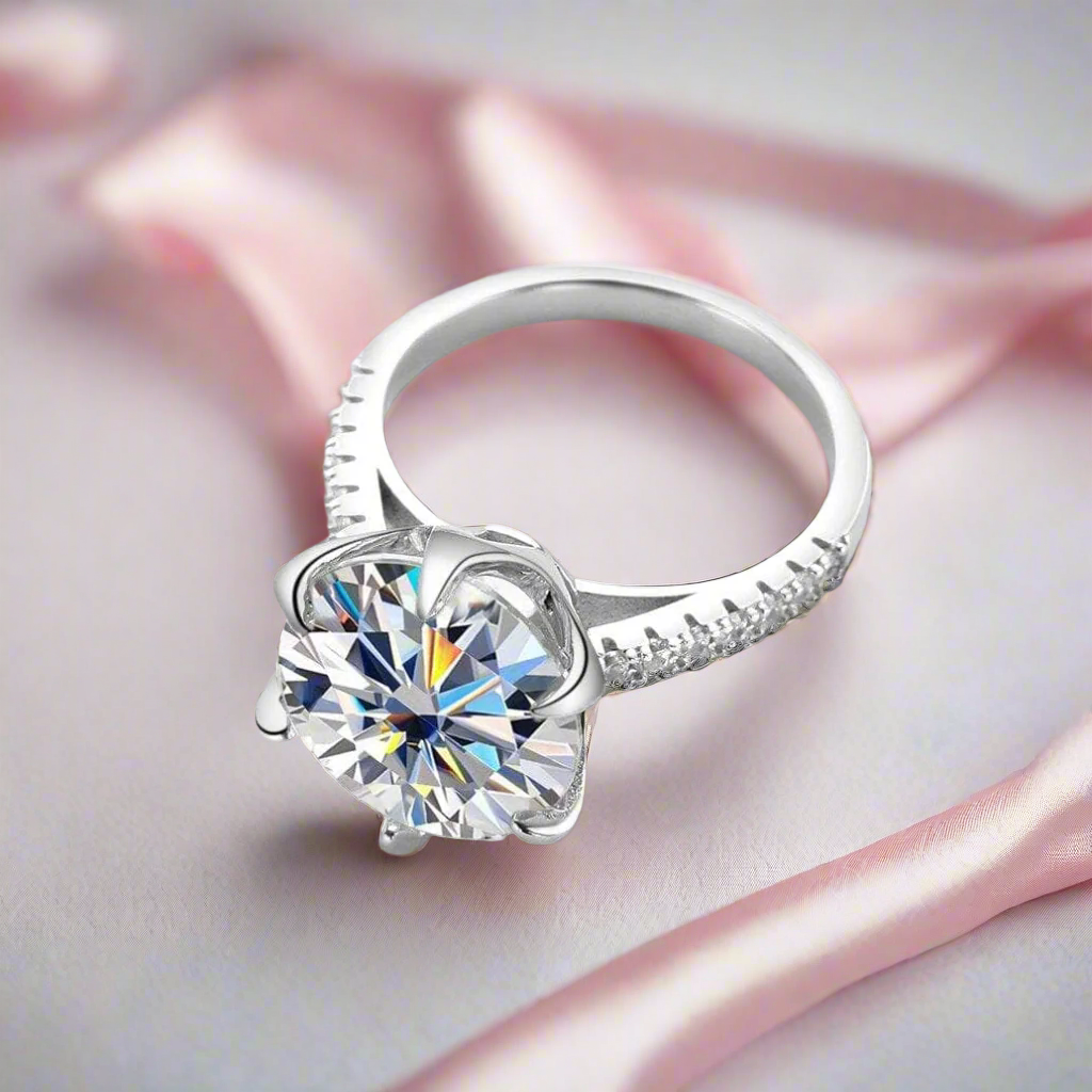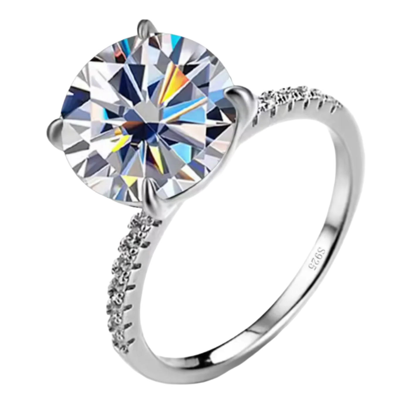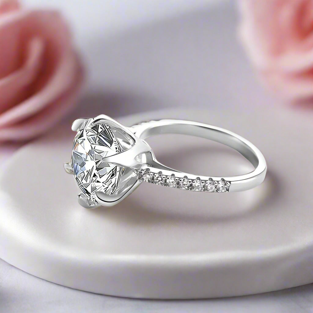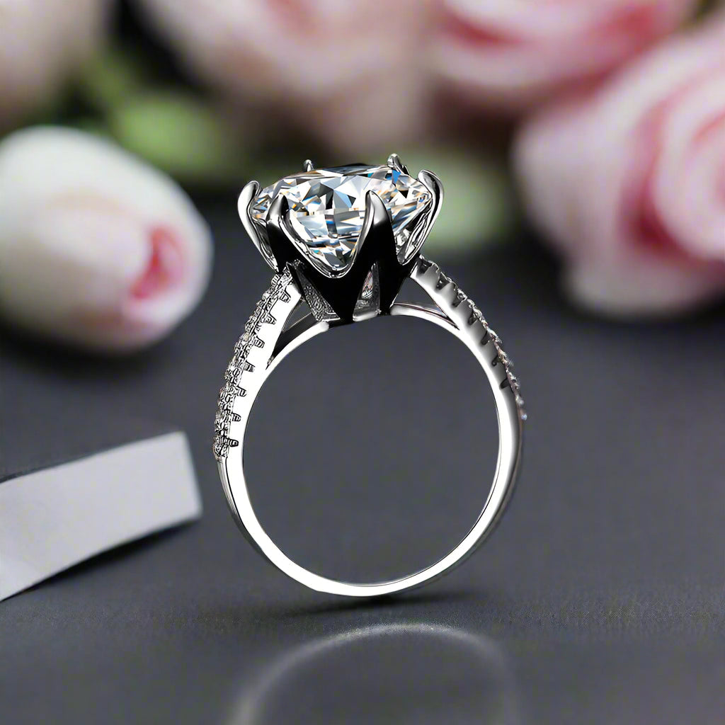 Fall in love all over again with our 5.0 Ct Certified Moissanite Classic Engagement Ring from Black Diamonds New York. Featuring a round cut diamond elegantly set in 6 prongs, this gorgeous ring is a timeless choice for your special moment. Enjoy the beauty of high quality design without breaking the bank - this ring is as affordable as it is mesmerizing.