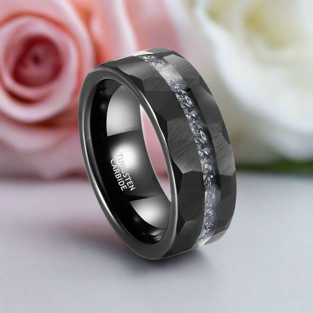 Aluminum Slag Inlay Hammered & Grooved Tungsten Carbide Ring