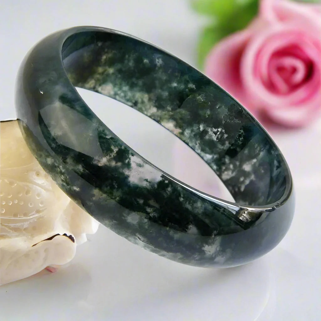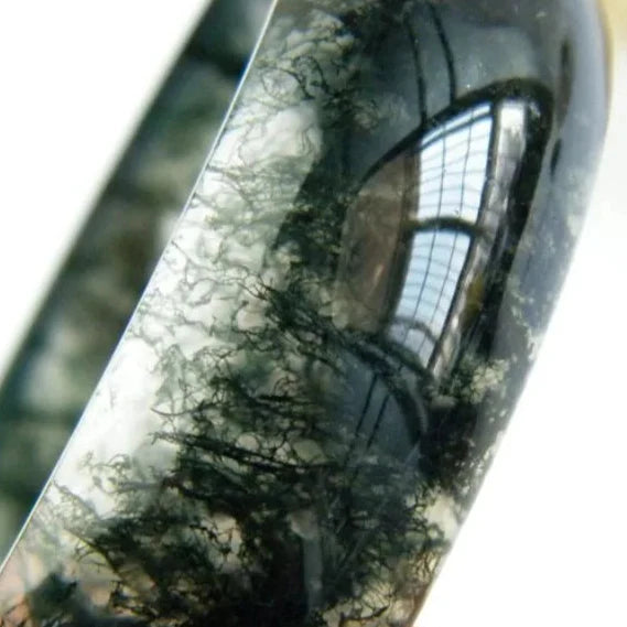 Step into the natural beauty and healing energy of Aquatic Moss Agate with our stunning bangle. This exquisite piece is made from high-quality, genuine Moss Agate, a stone known for its ability to promote balance and positivity. Each bangle features a unique and mesmerizing pattern, making it a one-of-a-kind accessory that will catch everyone's eye. Bring the calming essence of nature with you wherever you go and add this captivating bangle to your jewelry collection today!