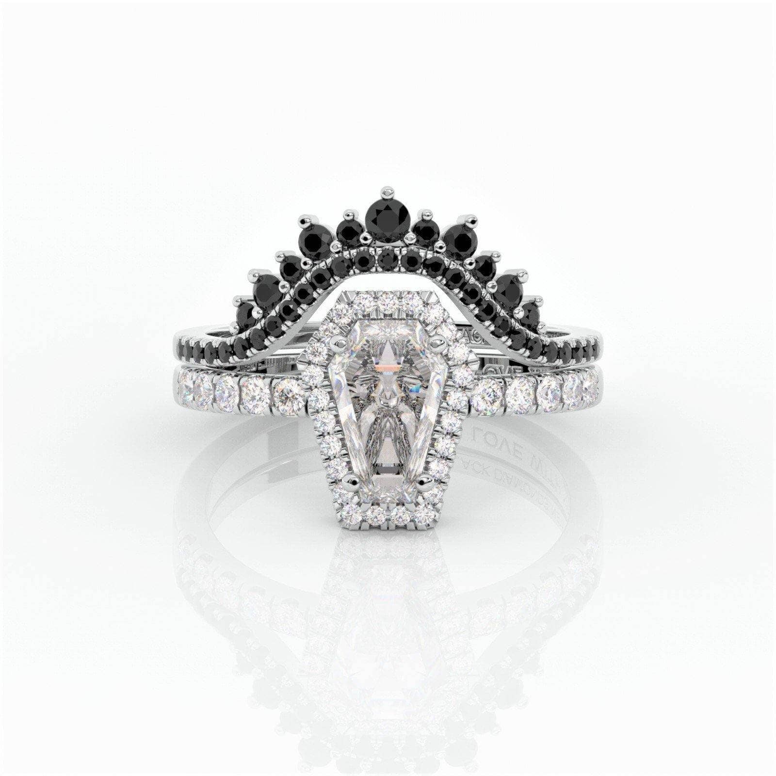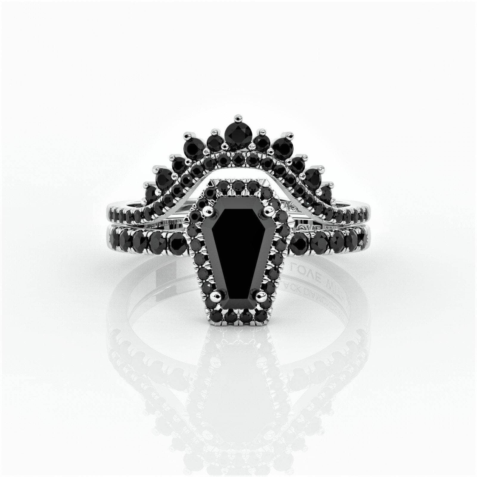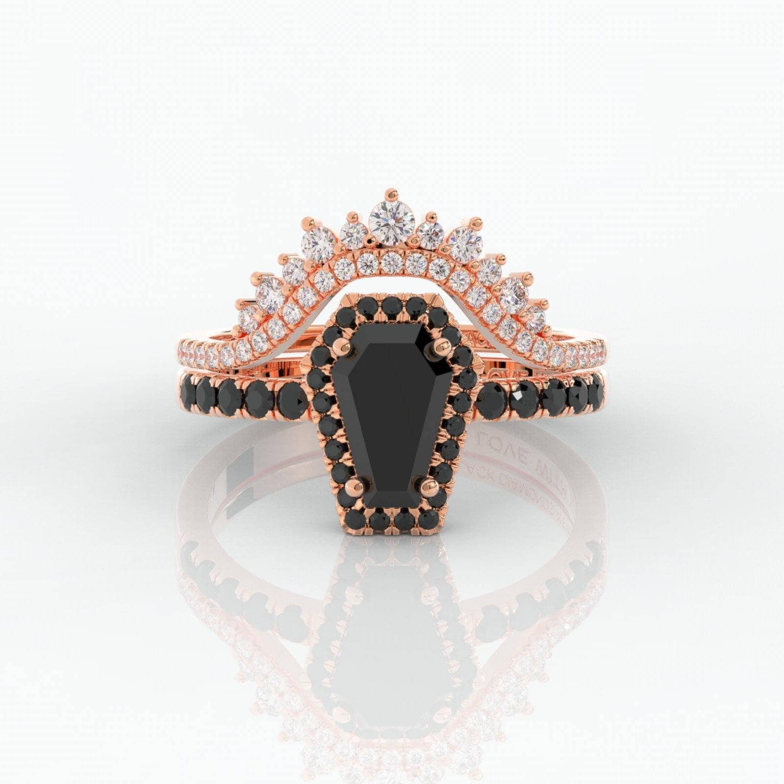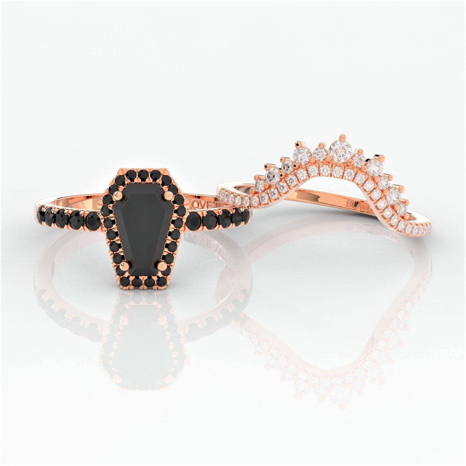 Best Love Rings- Rare Coffin Cut Diamond 14k Gold Gothic Ring Set
