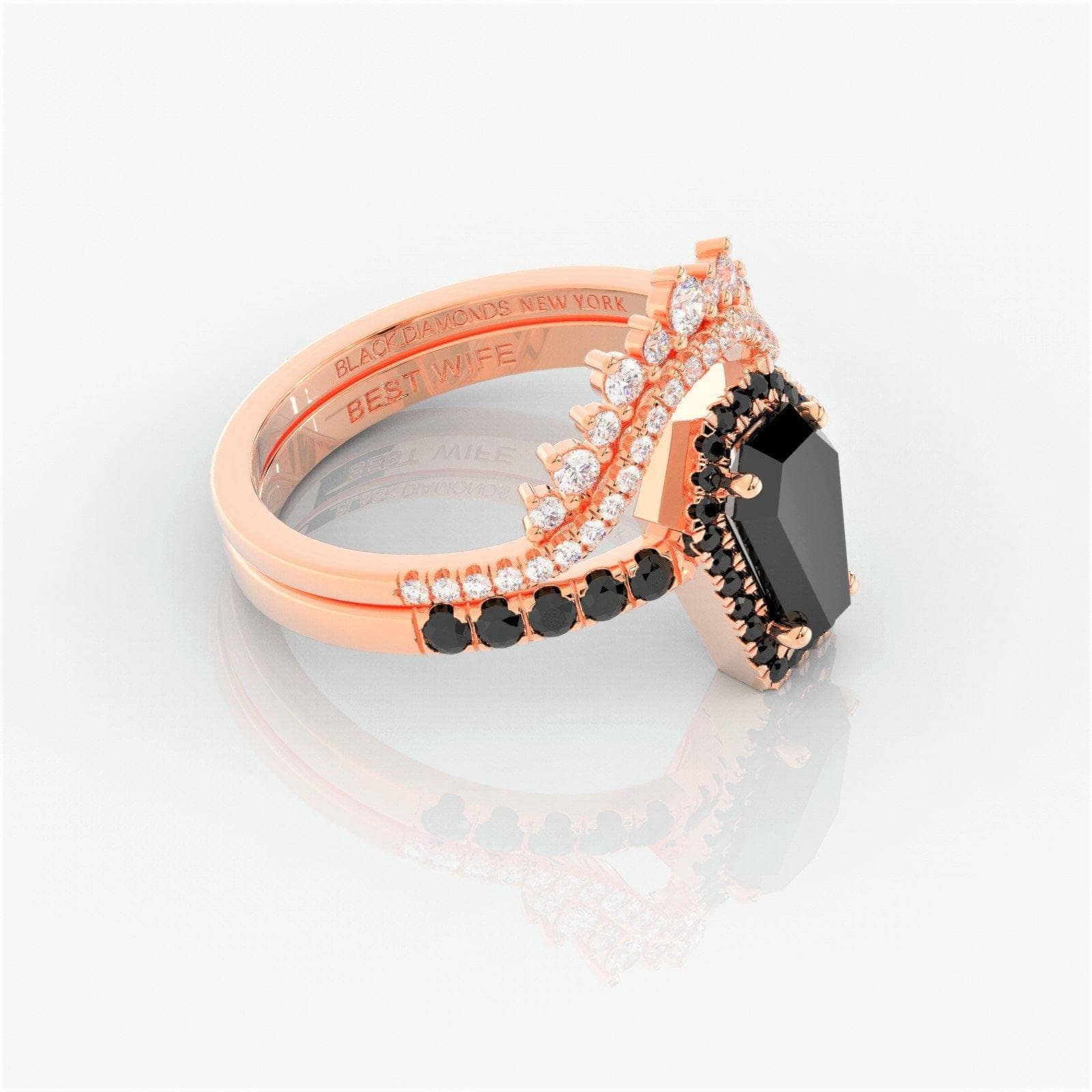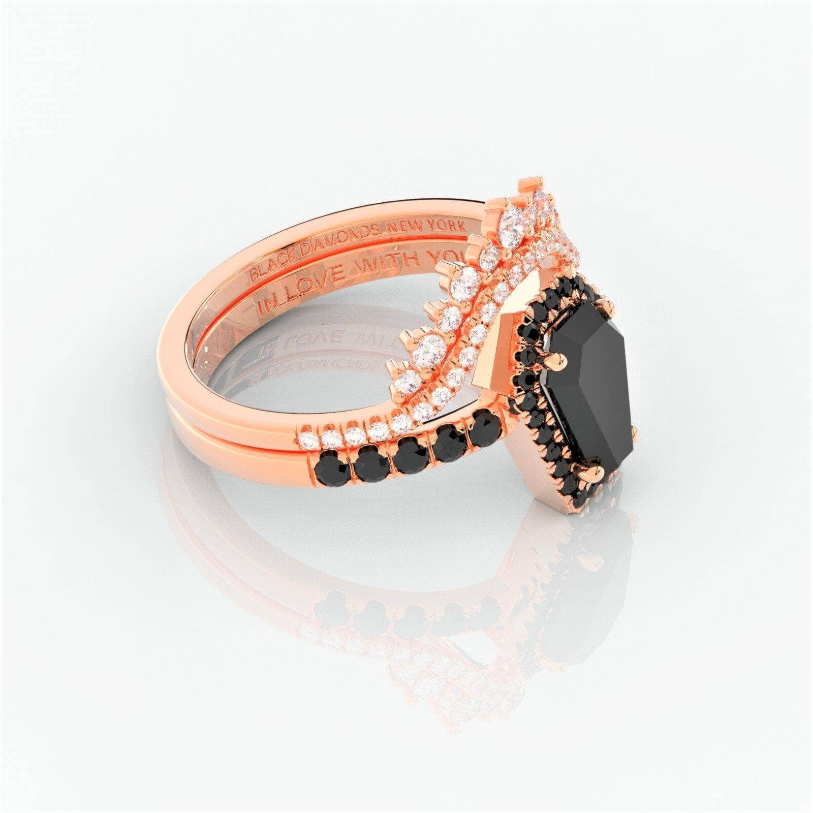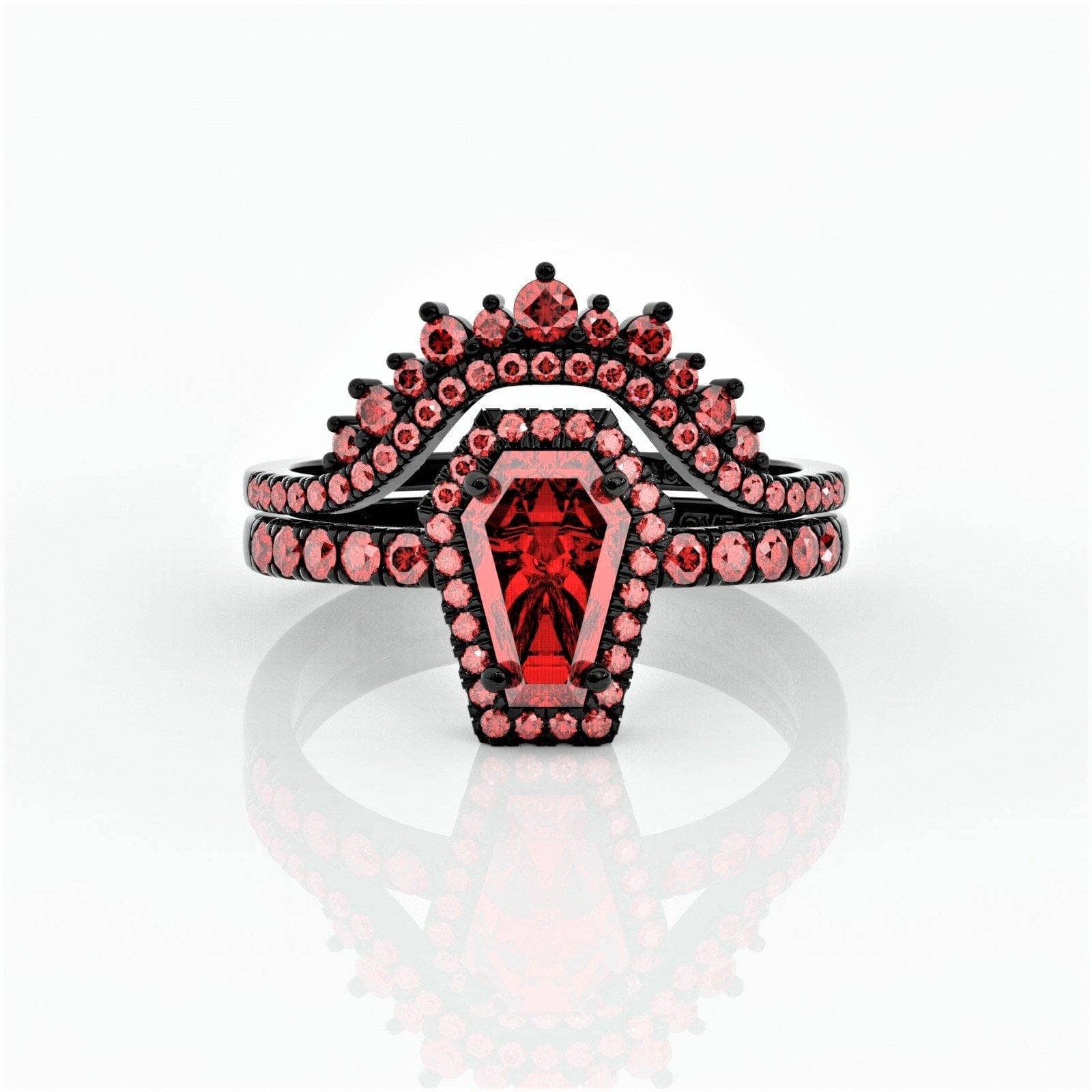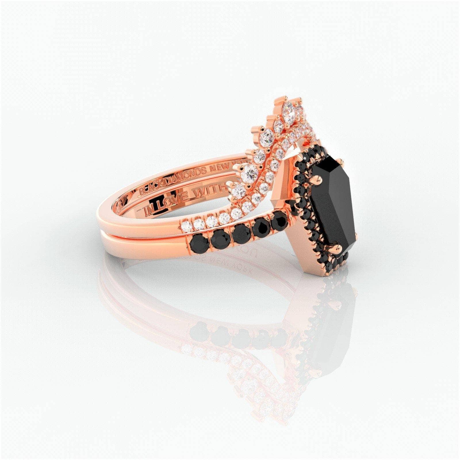 Best Love Rings- Rare Coffin Cut Diamond 14k Gold Gothic Ring Set