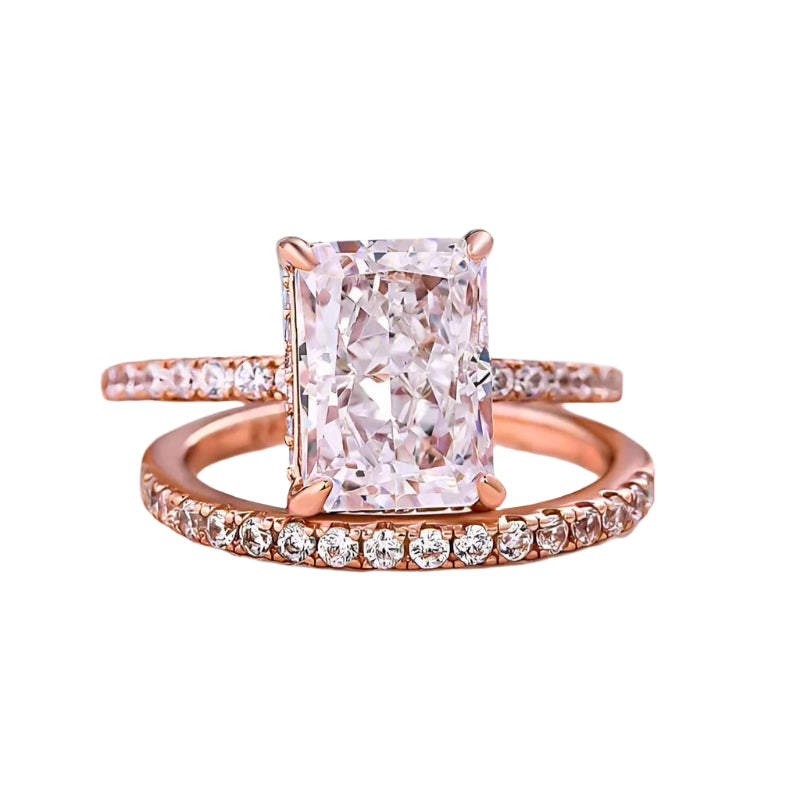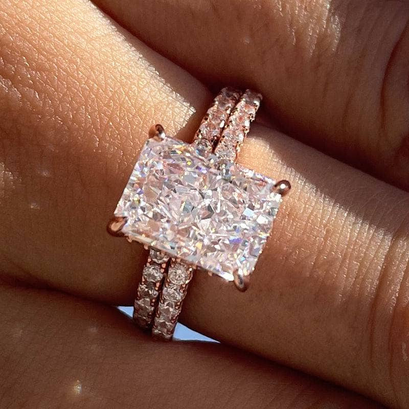 VIP Upgrade- Rose Gold 3.5ct Radiant Cut Wedding Ring Set (Aftersale Service)