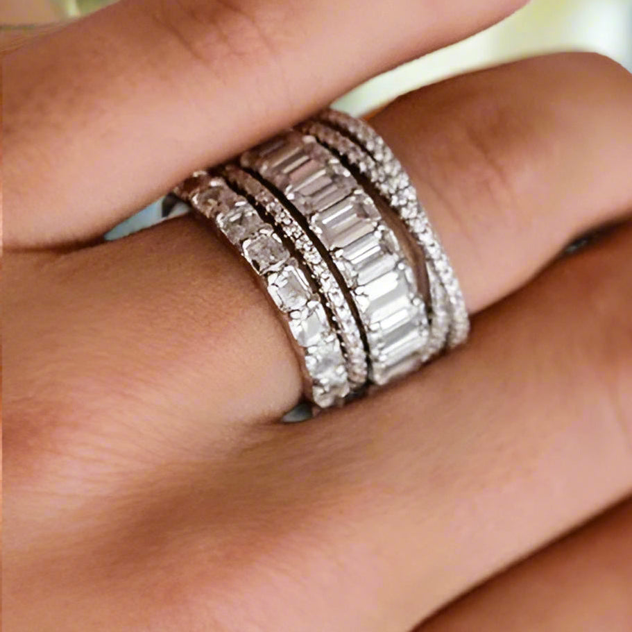 Stunning Women's 4PC Stackable Wedding Band Set