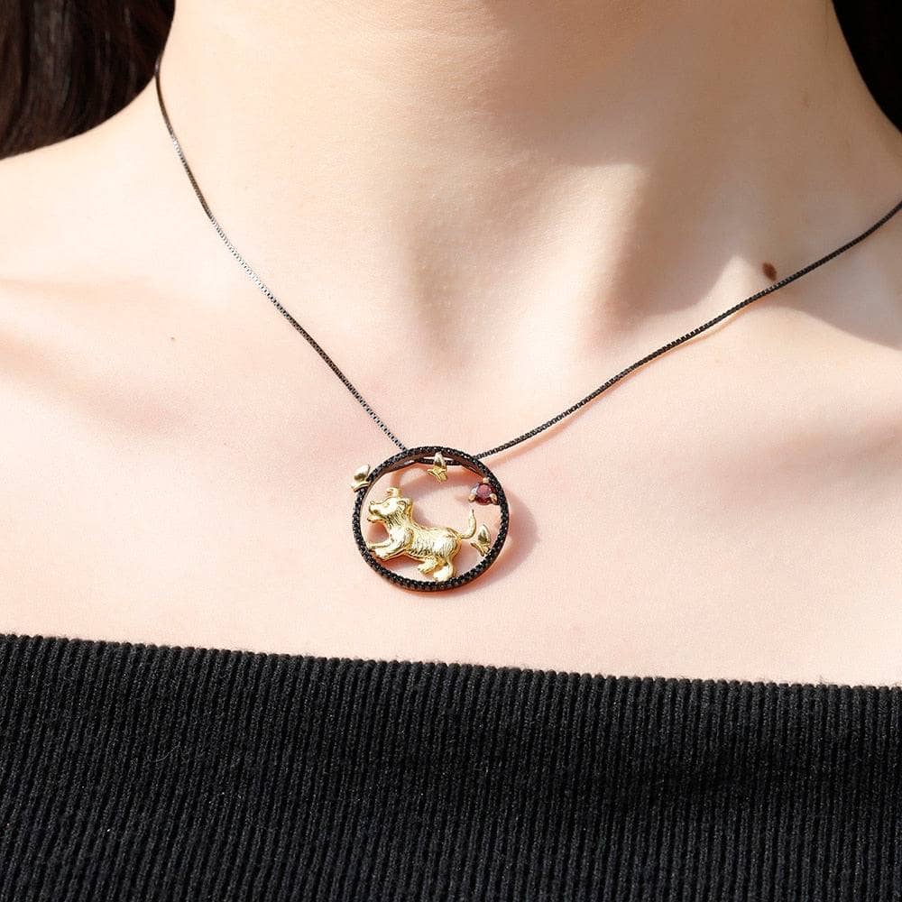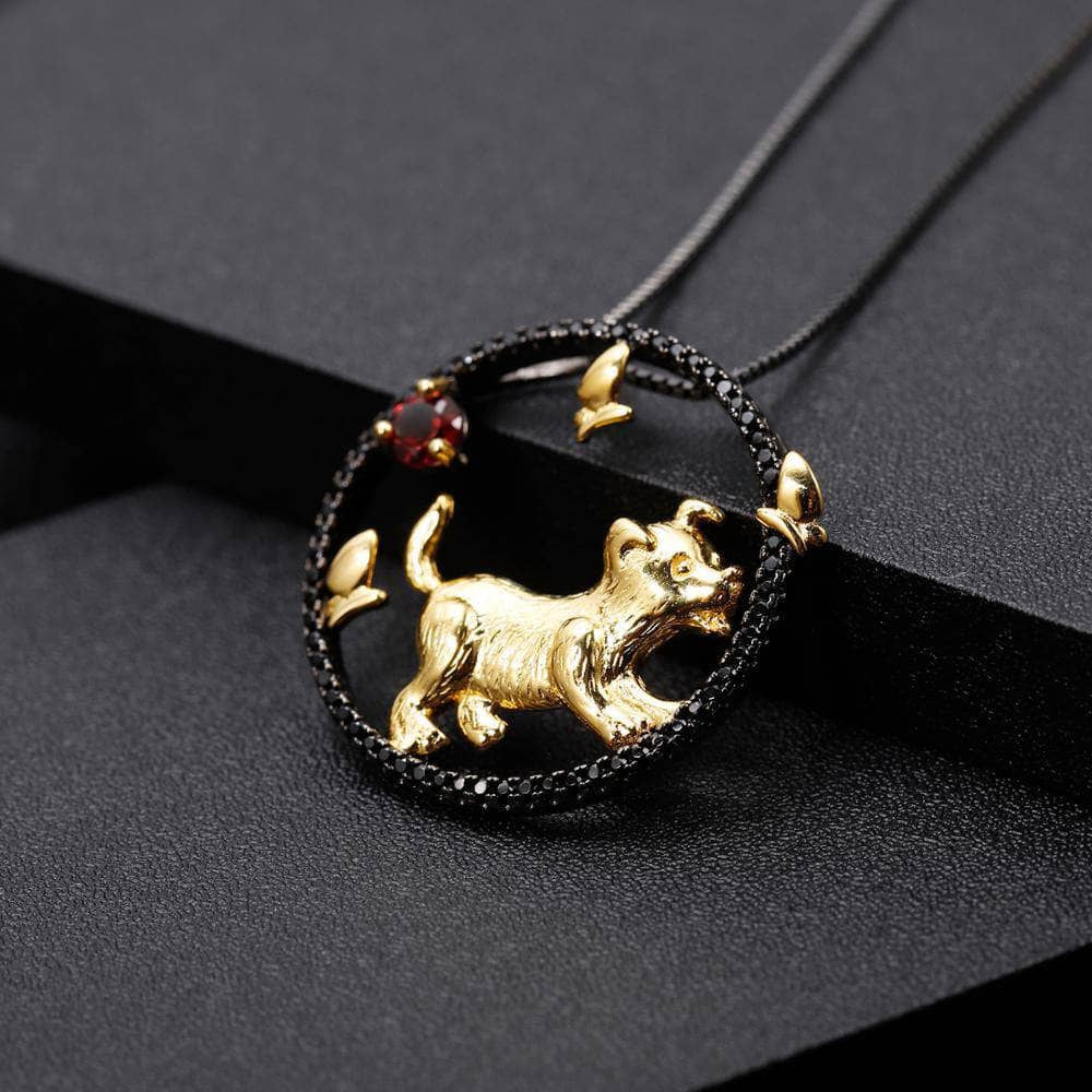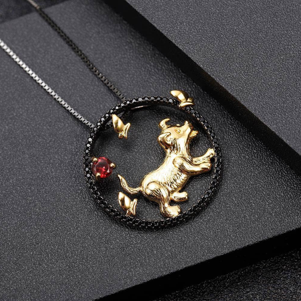 This Year of the Dog necklace features a natural red garnet gemstone, meticulously handcrafted to ensure enduring quality. Ethically sourced and designed with lasting elegance, it symbolizes loyalty and timeless craftsmanship.