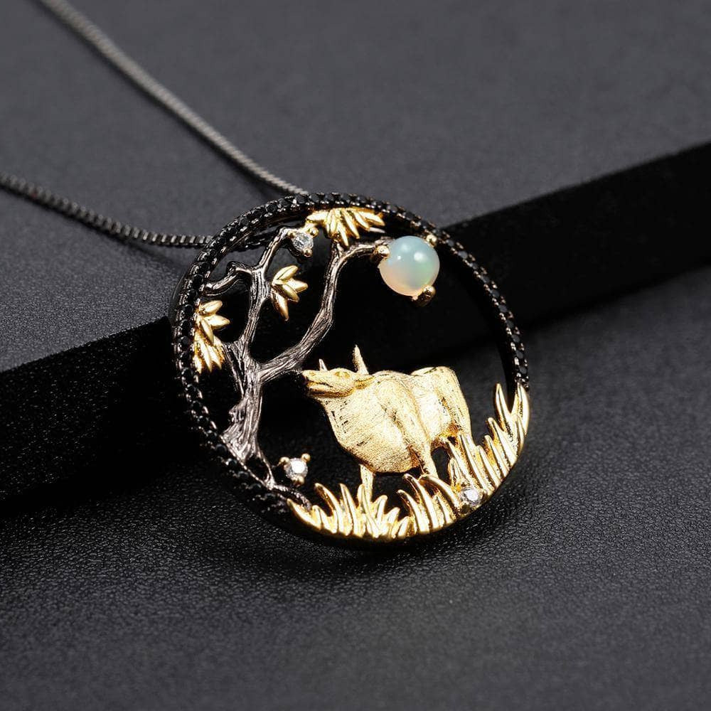 Celebrate the Year of the Ox with this exquisite Natural African Opal Gemstone Ox Necklace. Meticulously handcrafted for enduring beauty, it features premium, ethically sourced materials ensuring both quality and conscience.