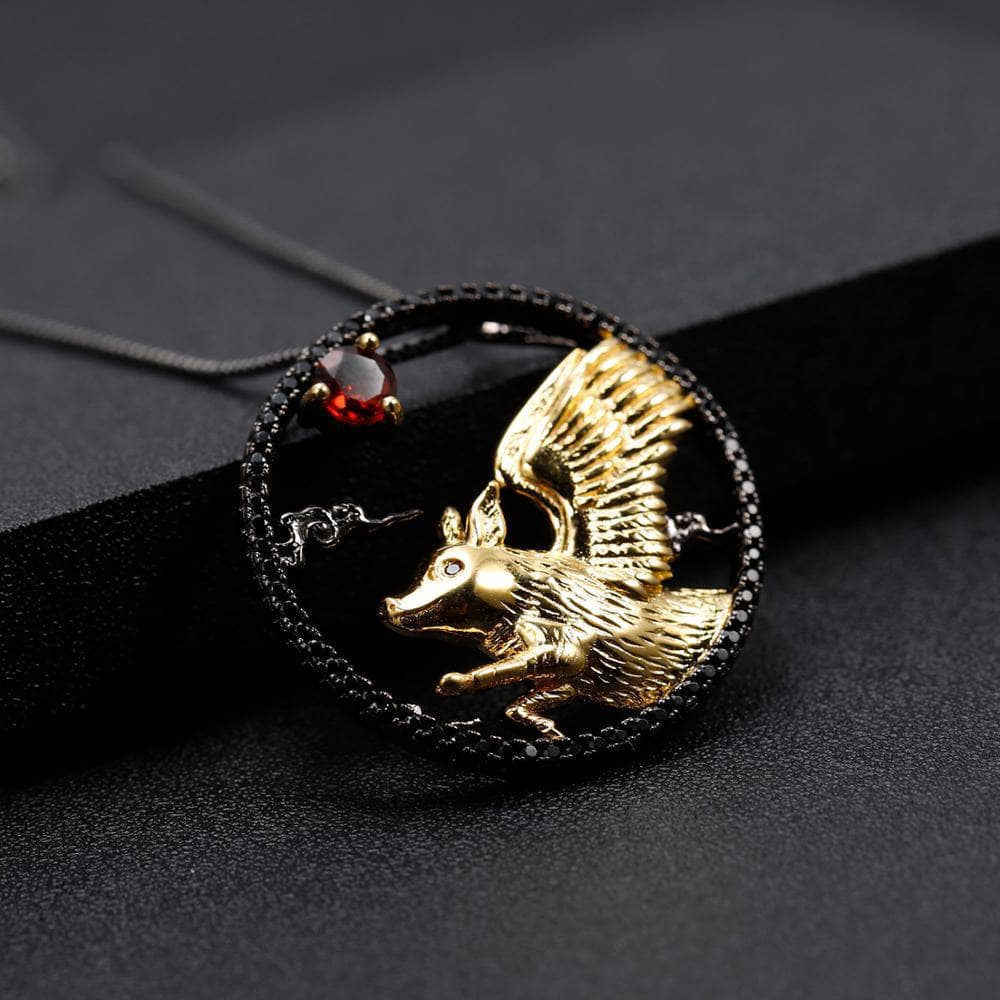 Year Of The Pig-Natural Red Garnet Handmade Pig Chivalrous Necklace