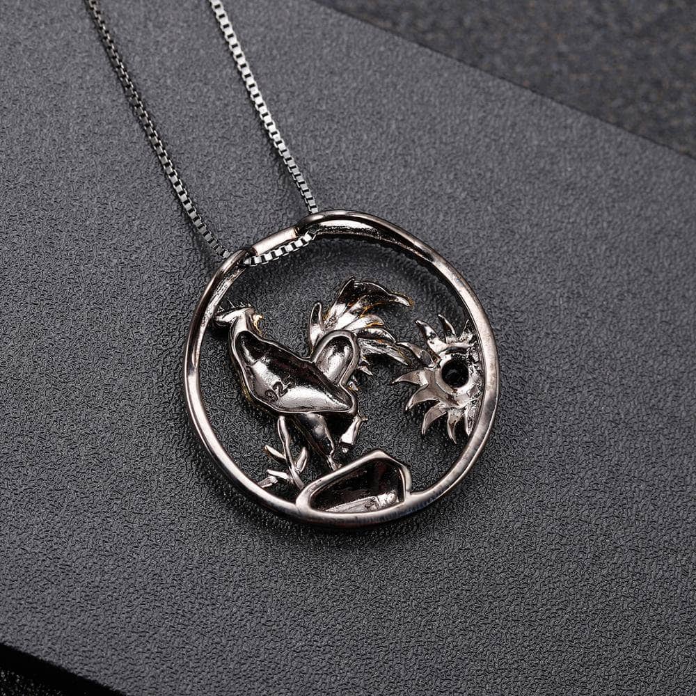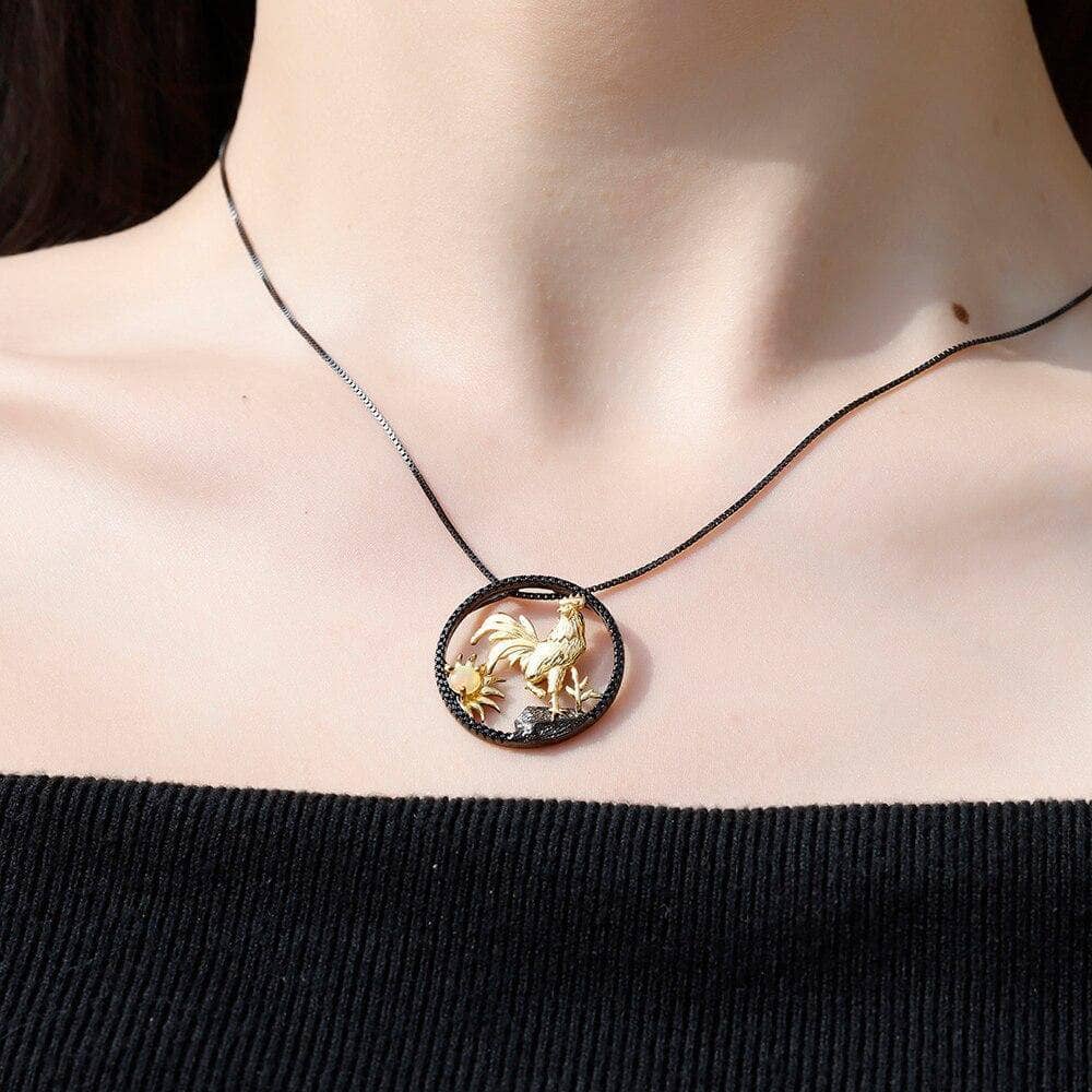 Celebrate the Year of the Rooster with this elegant necklace featuring a natural African opal gemstone. Crafted from 925 sterling silver with gold plating, the pendant measures 24.46mm and showcases a 0.45-carat, 4x4mm African opal centerpiece, complemented by nano black side stones. Weighing a total of 3.82g, this refined piece combines exquisite materials and delicate craftsmanship for a sophisticated statement.