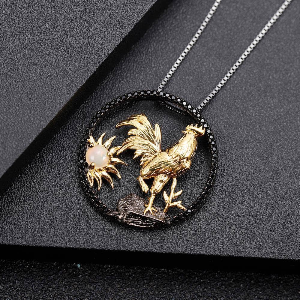 Year Of The Rooster- Natural African Opal Gemstone Rooster Necklace