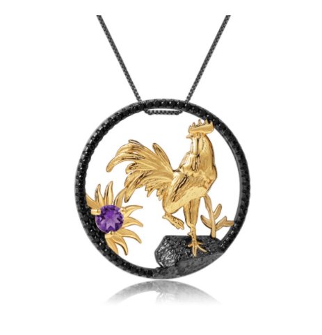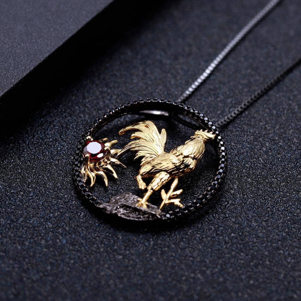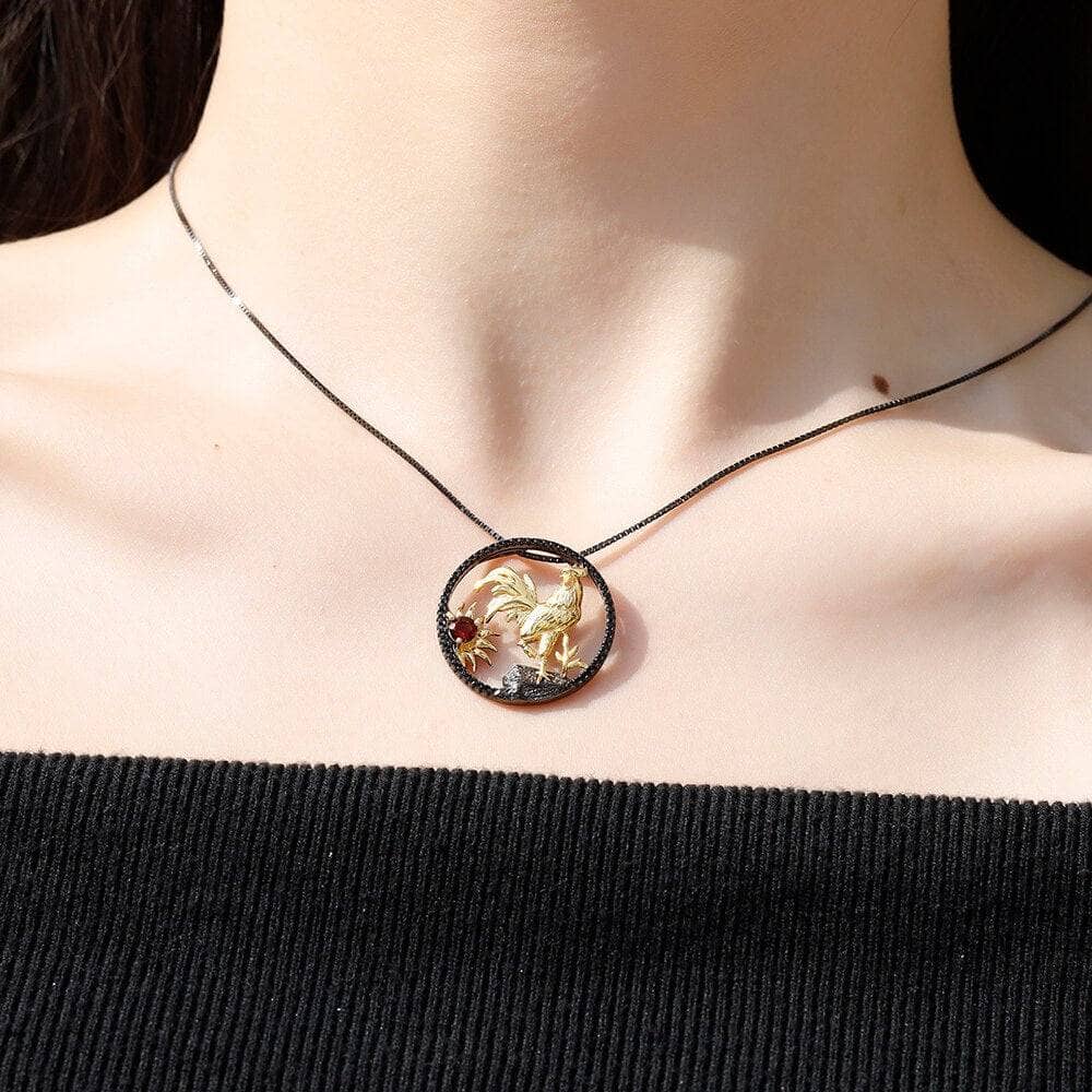Year Of The Rooster-Natural Red Garnet Handmade Rooster Necklace