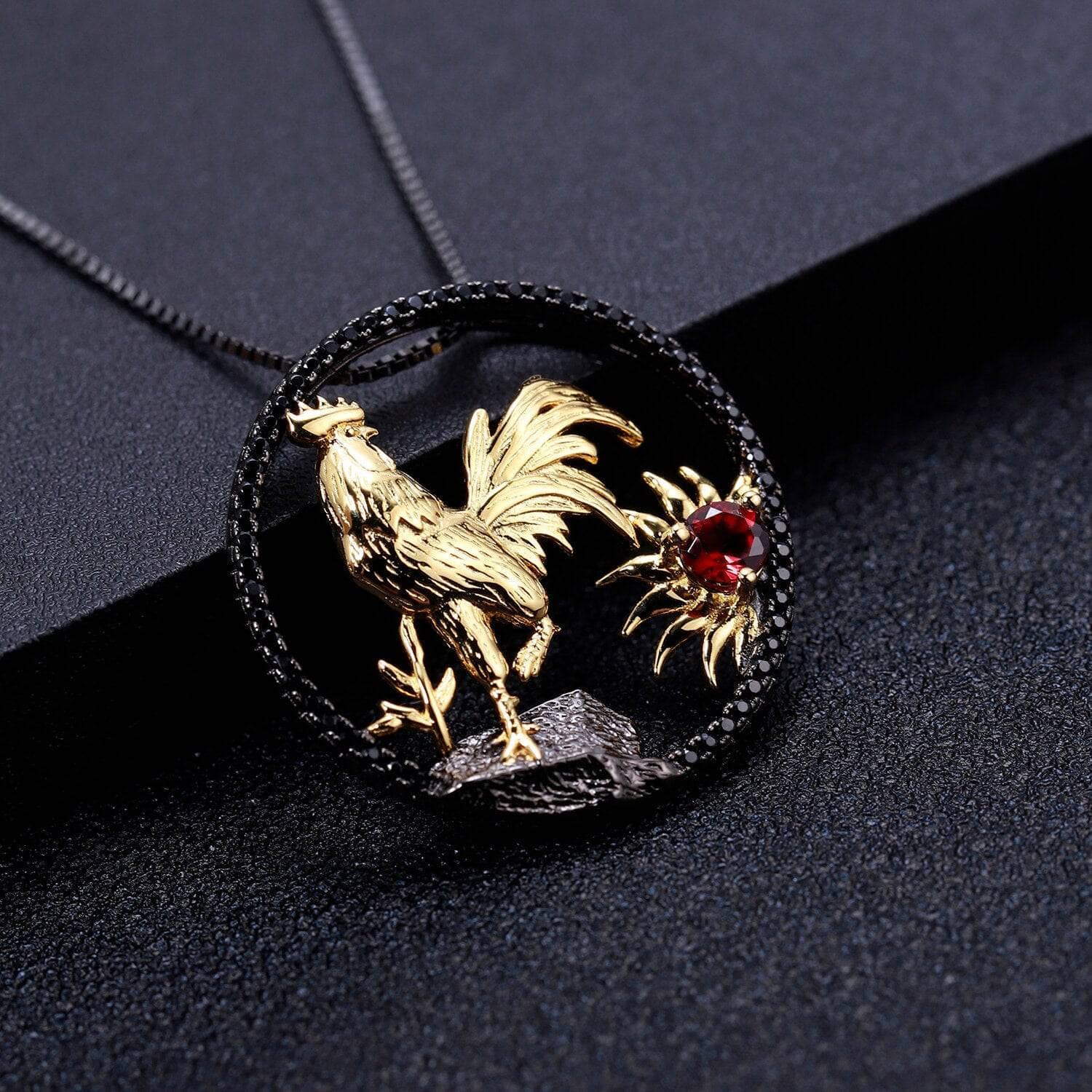 This exquisite Year of the Rooster necklace features a natural red garnet, meticulously handcrafted to ensure enduring beauty. Crafted with high-quality, ethically sourced materials, it is designed to be a timeless piece.